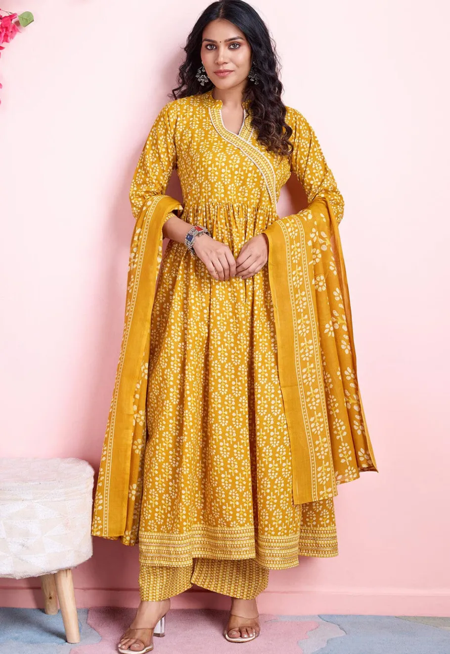 - Available with a Poly Cotton Pant and a Poly Cotton Dupatta in Mustard