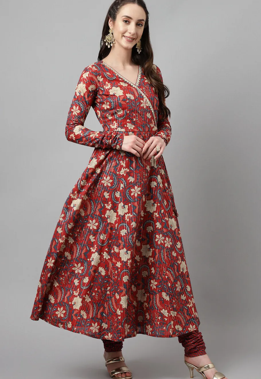 - This attire is Enhanced with Digital Print and Lace Work. Crafted in V Neck and Full Sleeve