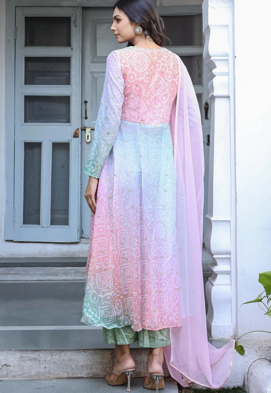 - Readymade Faux Georgette Aline Suit in Multicolor