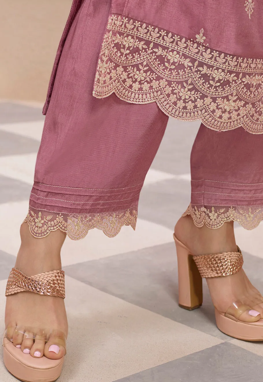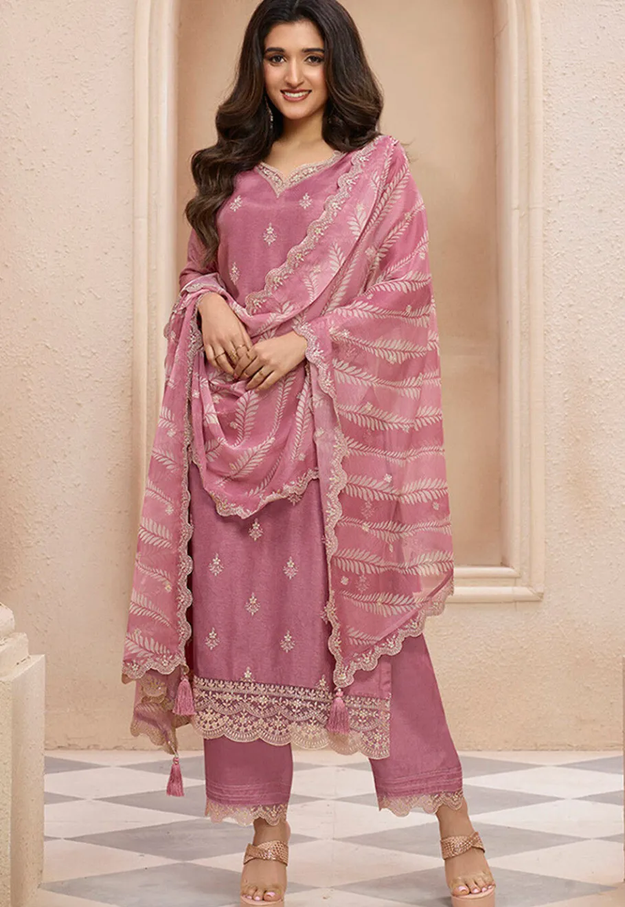 - Available with a Poly Shantoon Pant in Pink and a Digital Printed Chinon Chiffon Dupatta in Pink
