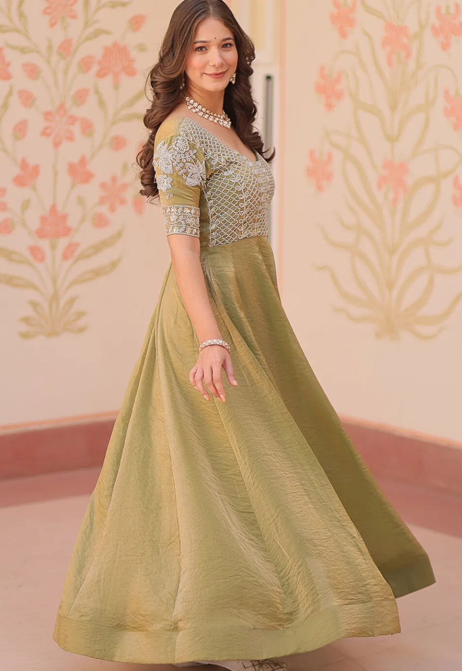 - Tissue Gown in Olive Green